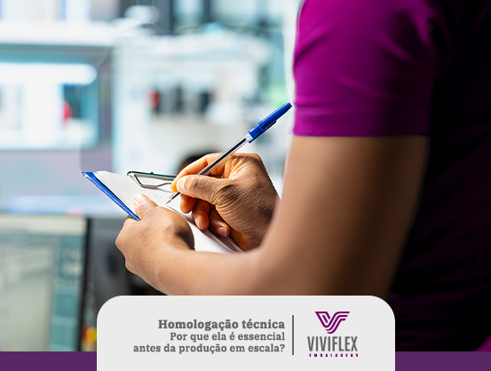 A homologação técnica é o processo de testar, validar e aprovar o filme plástico antes da produção em grandes volumes, garantindo que ele atenda exatamente às necessidades da operação do cliente.